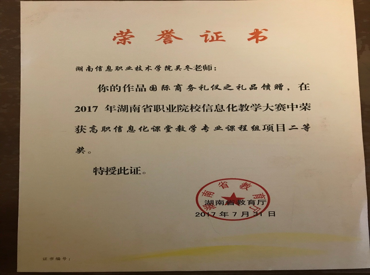湖南省职业院校教师教学能力比赛二等奖
