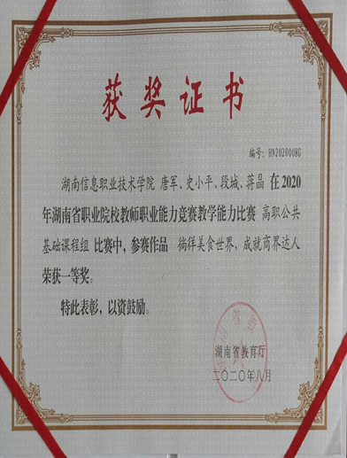 湖南省职业院校英语口语技能竞赛三等奖