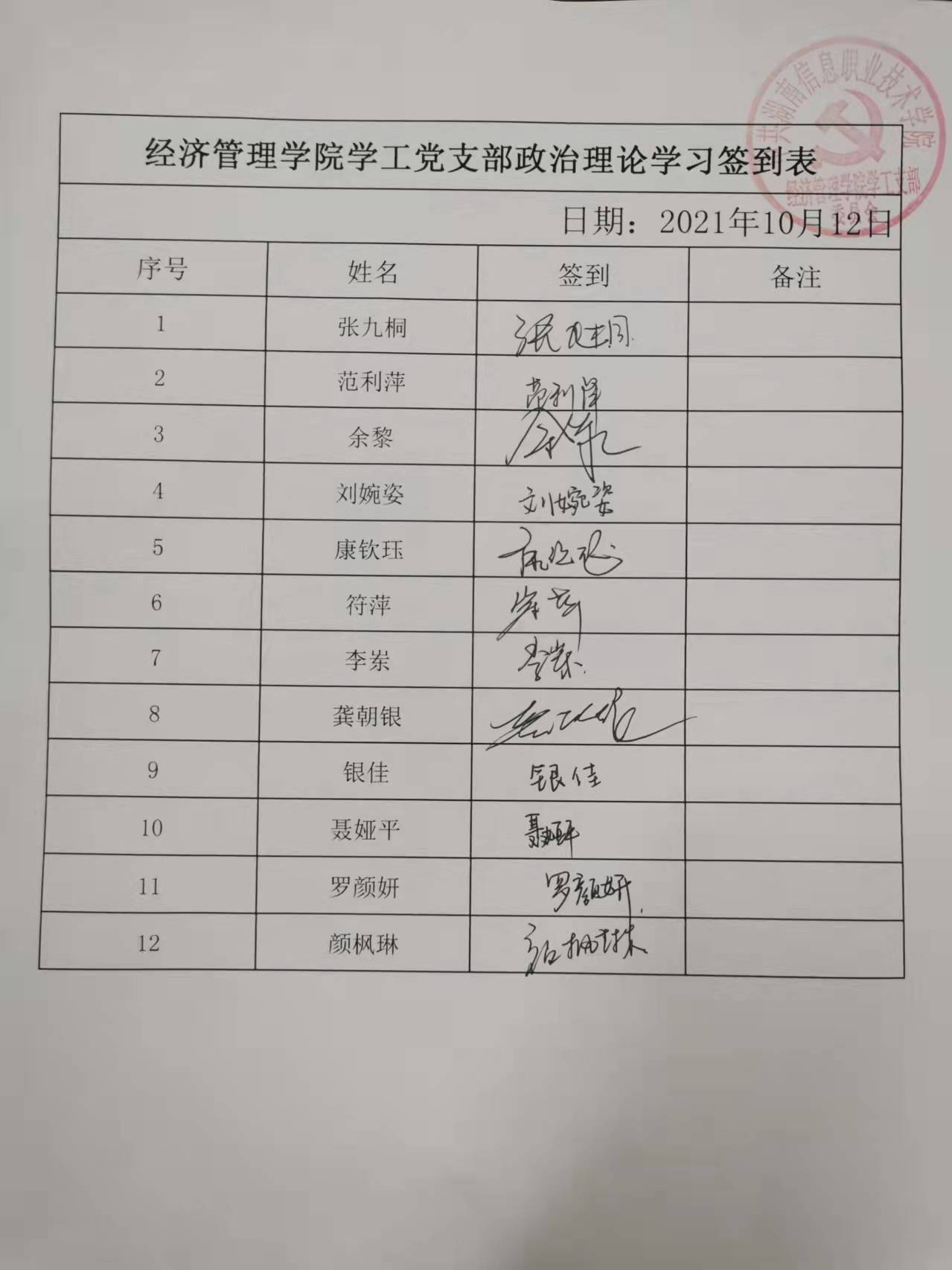 三、参加人员:经济管理学院党总支书记张九桐、经济管理学院学工党支部书记范利萍、经济管理学院学工党支部宣传委员余黎、经济管理学院学工党支部组织委员刘婉姿等12名党员老师
