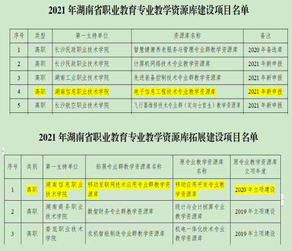 日前,湖南省教育厅发布《关于公布2021年湖南省职业教育省级精品课程与专业教学资源库项目评审结果的通知》,best365官网共有2个专业教学资源库和4门课程入选。