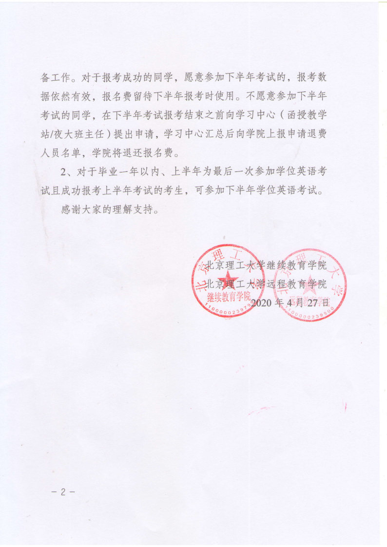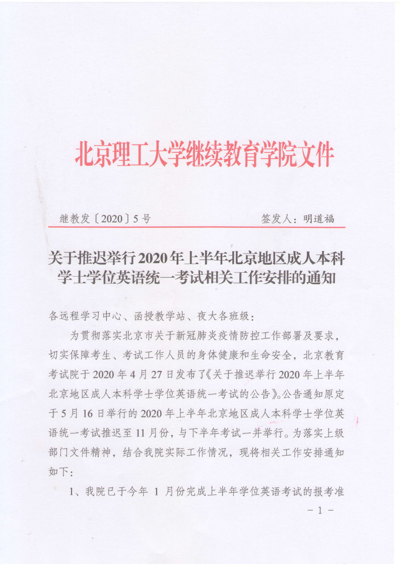 关于推迟举行2020年上半年北京地区成人本科学士学位英语统一考试相关工作安排的通知
