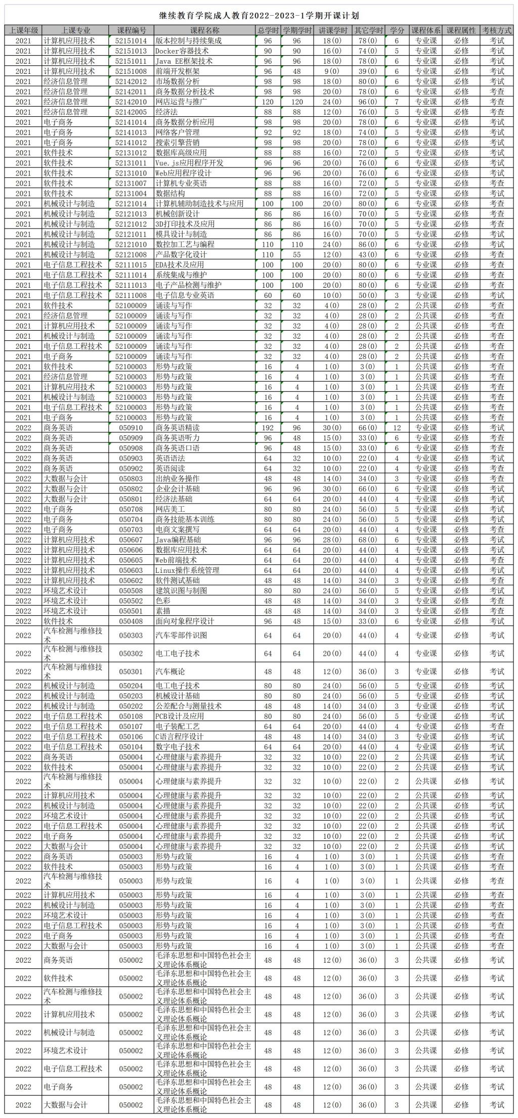 成人教育2022-2023-1学期开课计划