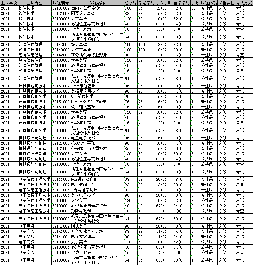 成人教育2021-2022学年第一学期开课计划