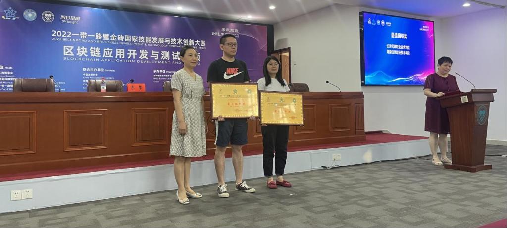 此次竞赛,充分展现了湘信学子从事区块链前端开发、区块链智能合约开发、区块链部署与运维、区块链测试等方面的能力和风采,体现学院“以赛促学”、“以赛促教”、“赛训结合”等教学改革的育人成果。湖南信息职院将进一步促进数字技术与实体经济深度融合,赋能传统产业转型升级,深度实施专业数字化改造,不断推进“岗课赛证”综合育人,全面提升人才培养质量,积极培养高素质复合型、创新性技术技能人才。