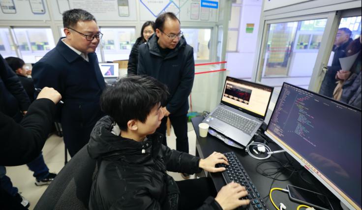 在视察过程中,朱院长详细了解竞赛的设备调试、训练计划、人员配备,服务保障等准备情况,对备赛工作的有序开展表示肯定。朱院长对参赛选手提出了三点殷切希望,一是要下定决心。大赛已进入冲刺阶段,选手要珍惜机会,刻苦训练;二是要坚定信心。高强度的训练是选手们人生一次难得的锻炼和财富,大家要树立信心和目标,在此次大赛中充分展示学院师生的风采;三是要科学训练。积极开展“实战”模拟训练,做好每日复盘,根据实际情况动态调整训练计划,把握好训练强度与节奏,注意劳逸结合。同时,要求软件学院做好保障,上下联动,共同关心参赛选手的生活、心理状态,从衣、食、住、行等方面全方位强化服务保障,全力以赴发挥支撑服务作用。