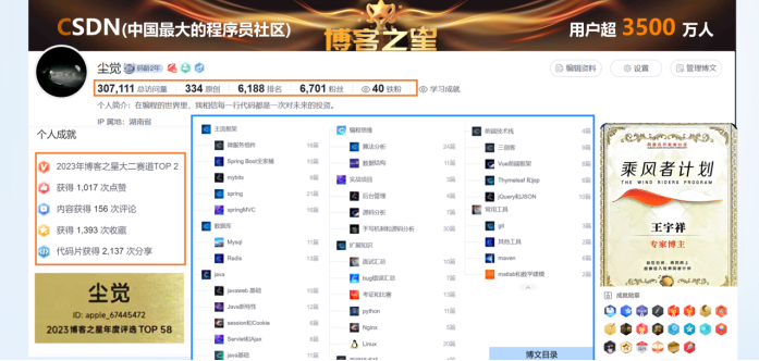 求真之路,慎独慎行。代码之美源于在于其简洁、高效、逻辑严谨,以及它所带来的无限可能性和创造性,两年来参与开发5个系统项目,累计开发代码71万行。敏行善为,一门专业课程学习结束后,他的学习笔记30万字,本着“人人为我,我为人人”的互联网精神,在老师的指导下,梳理和总结学习经验和项目成果,把创新能力和开源融合起来,在CSDN等技术社区分享,对100多篇博文复盘重构,只为学习者更便利。1年多的坚持,在开源社区奉献365次,撰写博文超170万字,博文浏览量超30万,获CSDN“博客之星”、阿里云专家博主,其间出版社约稿,邀请参编相关书籍,秉承学术严谨,均被婉言谢绝。