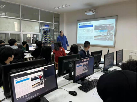 读懂“冰雪奇迹”,培育新时代大国工匠。课堂上,教师们还组织学生认真观看了“室内多自由度模拟滑雪训练系统”的训练视频。“模拟滑雪训练平台”、“六自由度平台”、“运动形态识别与位姿测量系统”等一个个专业名词将同学们带入人工智能的世界,通过老师对这些技术的详细介绍,学生深入了解了人工智能和虚拟现实技术在奥运健儿备战过程中的运用,增进了同学们对专业的认同感。