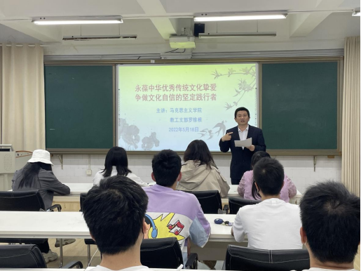 支部书记带头开讲。5月18日中午,支部书记罗维根以《永葆中华优秀传统文化挚爱 争做文化自信的坚定践行者》为主题,给机电工程学院学工支部的党员教师和学生入党积极分子上了一堂生动且具有教育意义的党课。