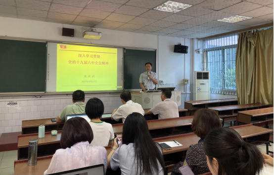 为推动党的十九届六中全会精神学深走实,并全面融入思政课教学。9月27日下午,马克思主义学院教工支部邀请纪委书记姚庆武围绕《深入学习贯彻党的十九届六中全会精神》讲授党课,全体教师参加。