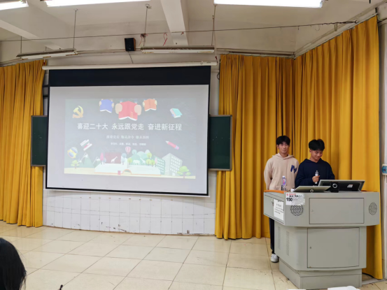 2、集体备课,集思广益。在研读原文和深入学习韩庆祥教授、张占斌教授、刘先春教授、蔡文成教授、齐卫平教授等专家学者解读党的二十大报告的课件和讲稿后,教研室组织教师进行集体备课,集思广益,制作了党的二十大精神内容的核心要点导学课件,全面介绍了报告的重大意义、逻辑框架及重点内容,着重介绍党的二十大报告中关于教育强国、青年工作的部分,旨在增强学生的历史使命感及身为青年的责任感、荣誉感。结合已有的专题(专题二 伟大时代的历史跨越),决定在专题讲授过程中全面贯彻党的二十大精神。在讲授新时代有新作为新成就一目的讲述中,及时和党的二十大报告中关于过去五年的工作和新时代十年的伟大变革相对应;在讲授“用好有利条件走好必由之路”一目时和党的二十大报告中的第二板块结合起来。同时利用第二专题的实践课(第三节课)进行专题宣讲,让党的二十大精神内容及时进课堂进学生头脑。