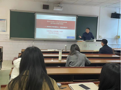 3月28日下午,马克思主义学院教工支部利用部门政治理论学习的机会,组织了2023年上半年意识形态的专题学习。支部书记罗维根主讲本次学习。