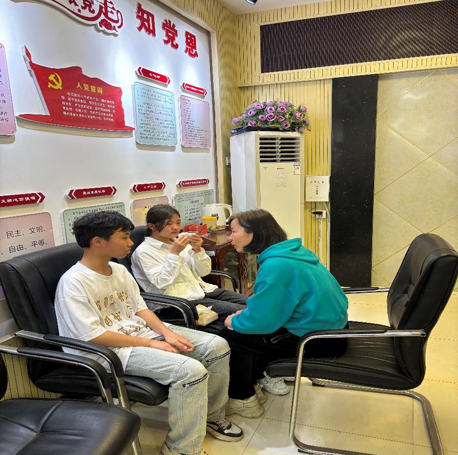王红时、李妮老师正在与学生面对面交流