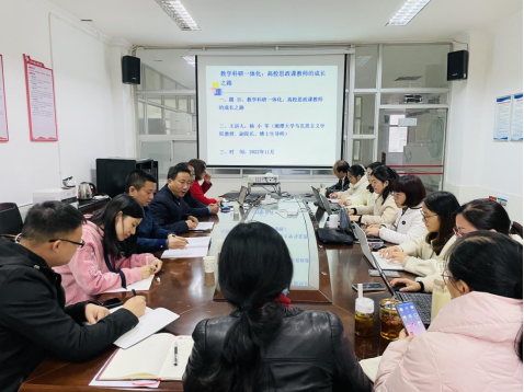 为进一步浓厚学术氛围,开拓科研视野,提升思政教师整体教学和科研水平,11月22日,马克思主义学院《毛泽东思想和中国特色社会主义理论体系》创新教学团队特邀湘潭大学杨小军教授进行学术讲座。杨教授以《教学科研一体化:高校思政课教师的成长之路》为题,从教研一体化的重要性、做科研要把握其“道”与“术”、教学能力的提升离不开科研等四个方面进行了精彩的学术报告。