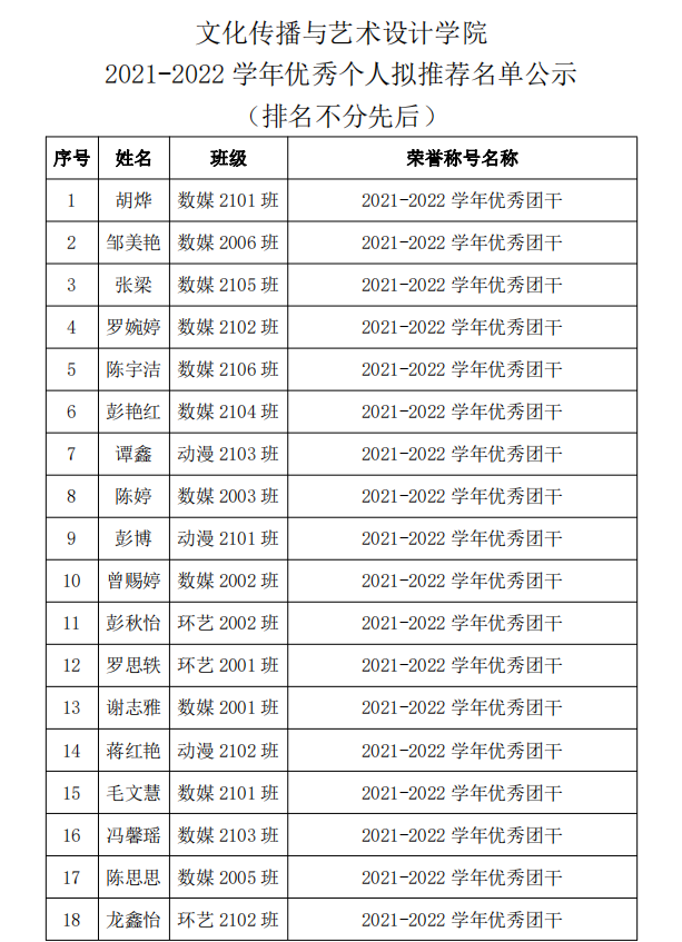 若对公示结果有异议,请于3个工作日内以书面、电话或E-mail等方式向文化传播与艺术设计学院团总支实名反映。