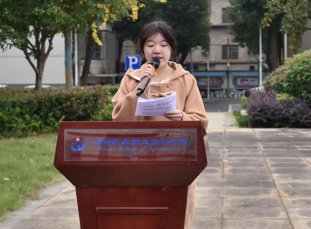 学院党总支书记黄继雄,着重强调全体师生要心怀对祖国的深切热爱,将爱国之情转化为攻坚克难、奋勇向前的实际动力。他对校运会中奋力拼搏的学子及履职尽责的学生干部予以表彰,同时结合校园管理要求,提醒学子们养成良好生活习惯,重视寝室卫生与消防安全,强化电信诈骗防范意识。最后,他寄语文传专业学子潜心钻研专业知识、锤炼专业技能,不负时光、不负韶华,度过充实而有意义的大学时光。