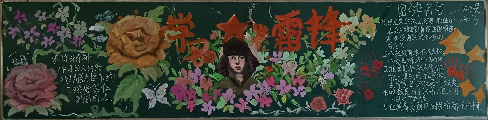 在"指尖传情" 创作实践中,同学们运用粉笔画、插画设计、书法创作等艺术形式,将《雷锋日记》经典语句转化为视觉符号。参与的同学们纷纷表示:“通过艺术创作,雷锋形象从文字变得鲜活,更深刻体会到奉献精神的力量。”