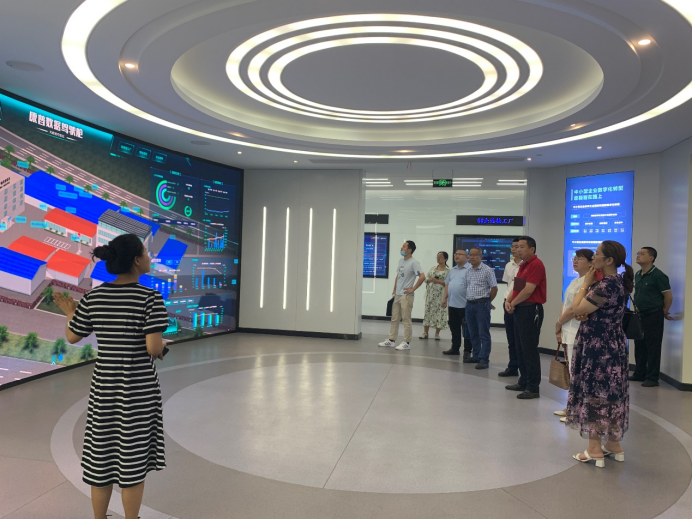 调研组参观了康普公司工业互联网运营展示中心,详细了解康普公司工业互联网示范工厂的节能机柜、数据驾驶舱、智能工业物联、天翼安防、5G+工业全光网等科技成果发展情况。