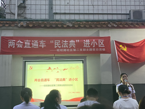 两会直通车,“民法典”进小区,2020年6月4日晚上7:30,网络空间安全学院学工党支部与旺旺路社区第二党支部、区域党建单位联合开展了主题党日活动。
