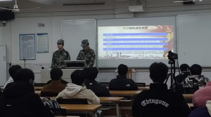随后,退伍军人代表的亲身讲述成为讲座亮点,将气氛推向高潮。他们以真挚的情感和生动的事例,分享了部队训练的艰苦与成长、执行任务的责任与挑战,让在场学生深刻领略到军人的使命担当和坚韧意志。从清晨高强度的体能训练到深夜的站岗执勤,从复杂的军事技能学习到紧急任务的迅速响应,每一个细节都展现出军旅生活对个人意志和能力的全方位锤炼。