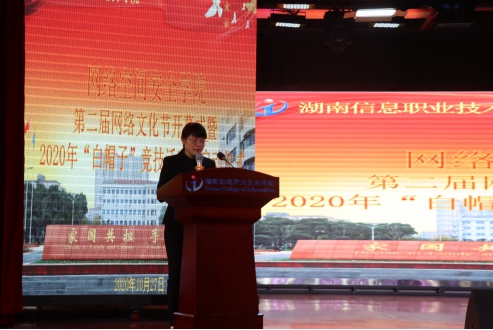 2020年10月27日,网络空间安全学院第二届网络文化节开幕式暨2020年“白帽子”竞技活动月启动仪式在多功能报告厅举行。开幕式由网络空间安全学院副院长曹文主持,奇安信集团湖南区教育行业部负责人钟伦玉、奇安信集团高级网络安全专家曹舒艺、网络空间安全学院党总支书记马孝杰、网络空间安全学院孙洪淋院长出席,网络空间安全学院600余名师生参加。