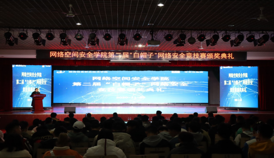 11月29日下午,网安学院第二届网络文化节闭幕式暨“白帽子”网络安全竞技赛颁奖典礼在多功能报告厅举行。颁奖典礼上,奇安信集团技术专家王少奇对竞赛进行点评,奇安星城副总经理王鑫宣布参赛选手成绩,学院领导为获奖者颁发荣誉证书和奖品。