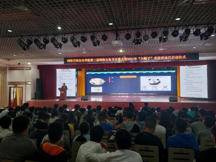 2021年10月12日,网络空间安全学院第三届网络文化节开幕式暨2021年“白帽子”竞技活动月启动仪式在多功能报告厅举行。开幕式由网络空间安全学院副书记袁军主持,网络空间安全学院党总支书记马孝杰、网络空间安全学院孙洪淋院长、奇安信科技集团湖南区教育行业部负责人钟伦玉、奇安信科技集团资深安全顾问曹舒艺出席,网络空间安全学院500余名师生参加。