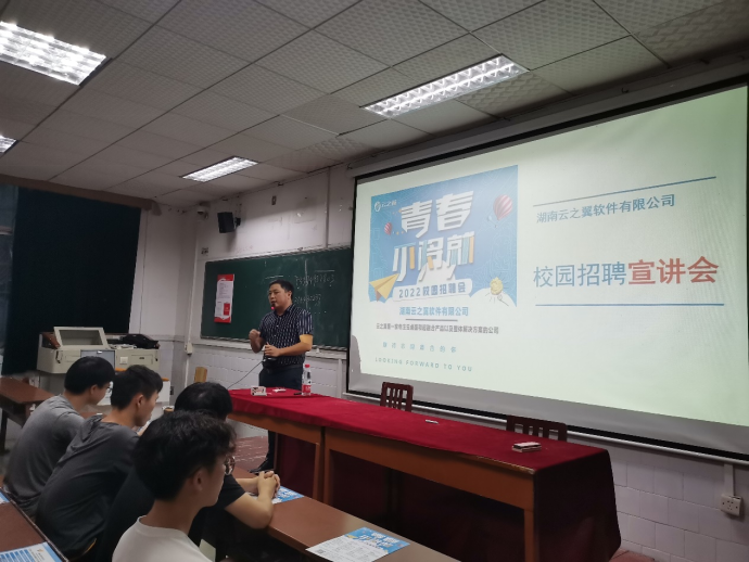 2021年9月27日下午,湖南云之翼软件有限公司宣讲会在3教学楼101教室举行。湖南云之翼软件有限公司(以下简称云之翼)专注于私有云平台基础IT架构,是一家专业以虚拟化技术为依托建设私有云平台的高新科技企业。此次宣讲会致力于解决19级网络空间安全学院毕业生就业难的问题。网络空间安全学院孙洪淋院长、云之翼总经理刘平参加了该次宣讲会。