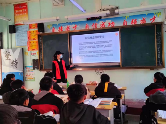 网络安全宣传进入乡村中小学。志愿者们与家乡中小学对接,开展以“预防电信诈骗,警惕上当受骗”为主题的宣传活动。分别从合理使用手机上网、学会自我保护,抵制网络诱惑、适度游戏等方面向同学们普及网络安全知识,并引用简单有趣的故事,让学生将防诈骗的知识牢记心中。