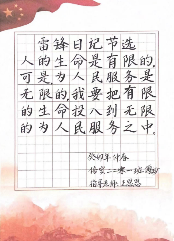 2023年2月26日,在第60个“学雷锋纪念日”到来之际,best365手机版官方网站网络空间安全学院的师生们利用“我的自习有点‘潮’”创新晚自习开展“传承雷锋精神 续写雷锋日记”活动,掀起“学雷锋月”活动热潮。七百余名师生重读《雷锋日记》,摘抄日记原文,把雷锋思想入脑入心,将雷锋精神代代传承下去。