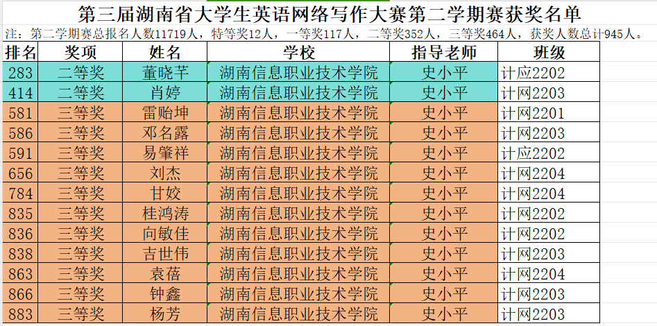在刚刚落下帷幕的第三届湖南省大学生英语网络写作大赛中,网络空间安全学院13名学生从数万名参赛者中脱颖而出,获二等奖2项、三等奖11项。