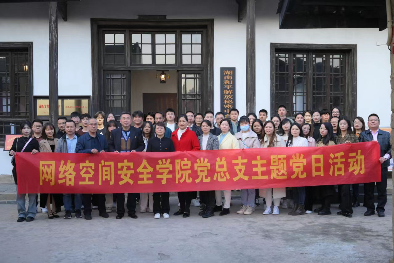 为缅怀革命先烈,锤炼党性修养,坚定理想信念,强化使命担当,11月28日,网络空间安全学院党总支组织全体党员师生开展11月主题党日活动,听取主题党课、前往湖南和平解放秘密电台工作站旧址,追忆峥嵘岁月,传承红色精神。