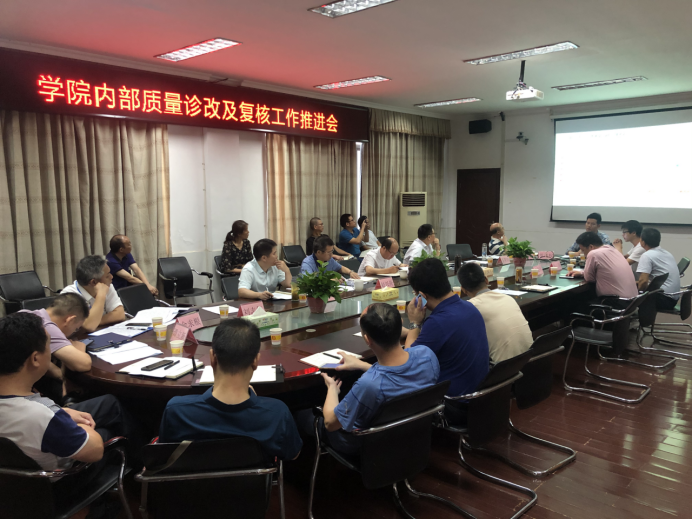 为贯彻落实教育部、湖南省教育厅关于职业院校内部质量保证体系诊断与改进工作的有关要求,构建好学院内部质量保证体系,扎实推进质量诊改工作,7月8日上午,学院内部质量保证体系诊断与改进工作推进会顺利召开。副院长余求根主持,党委书记赵兴舟、院长陈剑旄及在院班子成员出席,质量管理处等相关部门负责人参加。