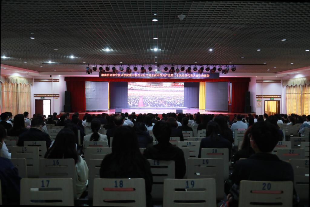 best365官网党委高度重视、周密安排,组织全校师生于多个会场、教室内集体收听收看党的二十大开幕会,激发和引领全校师生立足新时代、奋进新征程,以优异成绩庆祝党的二十大胜利召开。院领导、中层干部、马克思主义学院教师,学生党员、入党积极分子和学生代表在多功能报告厅主会场,各二级学院组织师生在教室分别观看了开幕会现场直播盛况,认真聆听习近平总书记代表十九届中央委员会向大会所作的报告,大家精神振奋,热情高涨,深入学习领会报告精神。