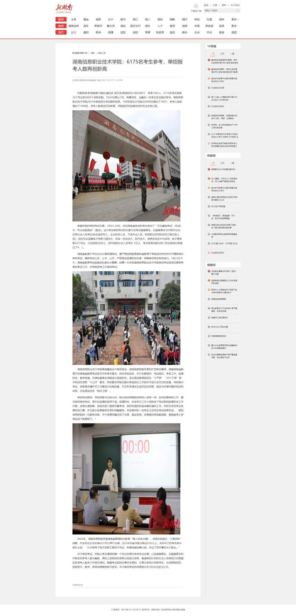 3月25日,新湖南发布《best365手机版官方网站:6175名考生参考,单招报考人数再创新高》。