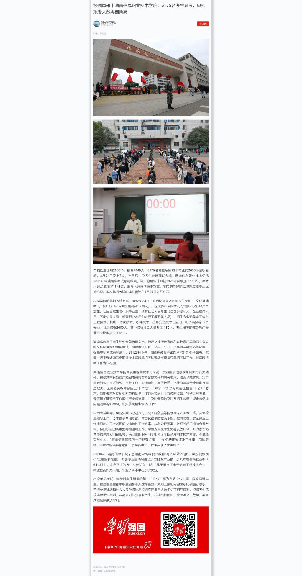 3月25日,学习强国发布《校园风采丨best365手机版官方网站:6175名考生参考,单招报考人数再创新高》。