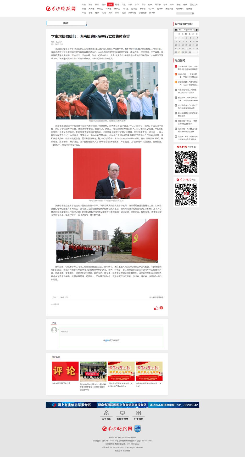 4月26日,长沙晚报发布《学史增信强信仰——湖南信息职院600余名师生党员集体宣誓》。