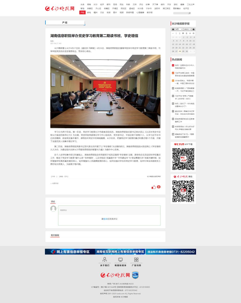 4月27日,长沙晚报发布《湖南信息职院举办党史学习教育第二期读书班,学史增信》。