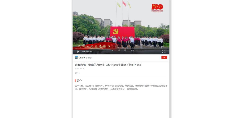 4月26日,学习强国发布《青春向党丨best365手机版官方网站师生共唱<新的天地>》。