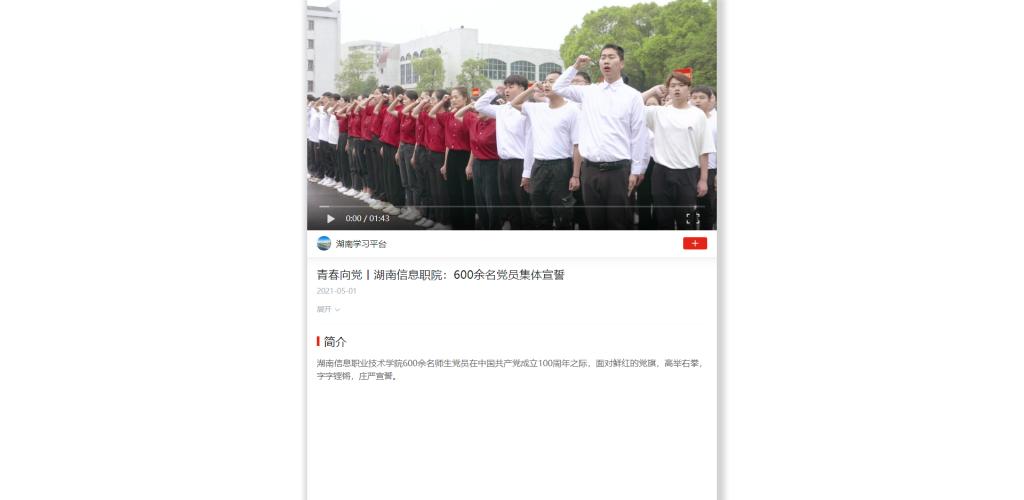 5月1日,学习强国发布《青春向党丨湖南信息职院:600余名党员集体宣誓》。