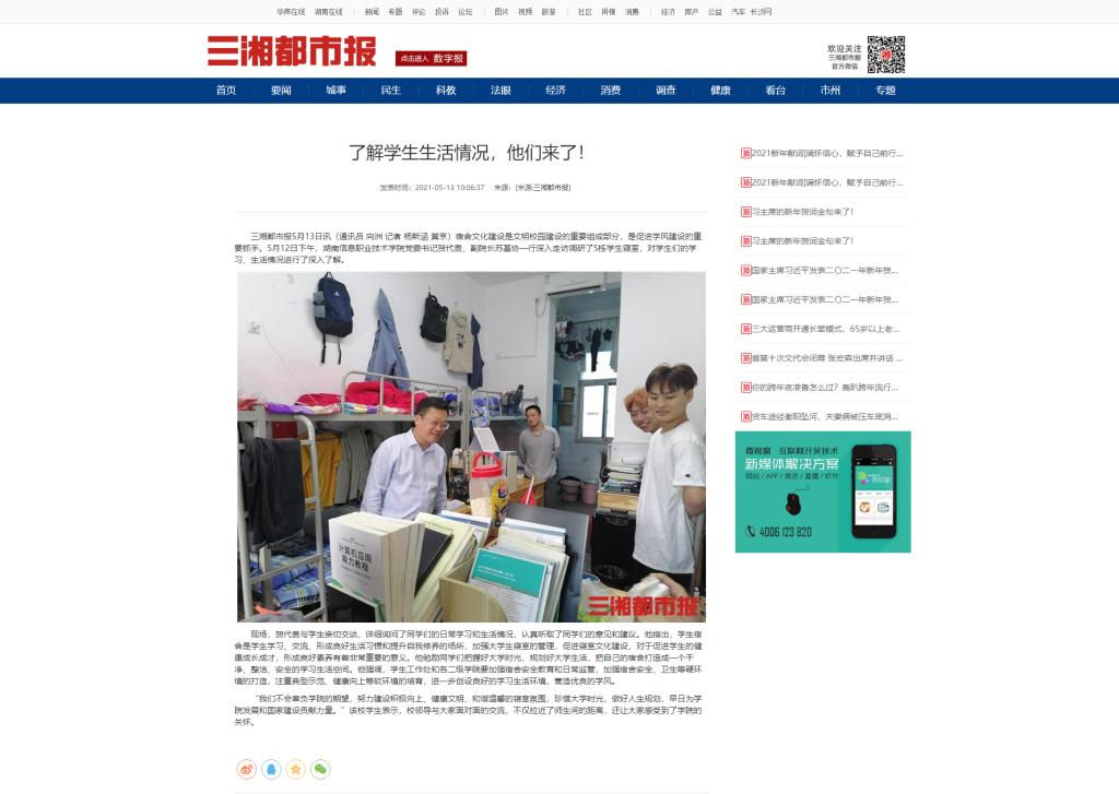 5月13日,三湘都市报发布《了解学生生活情况,他们来了!》。