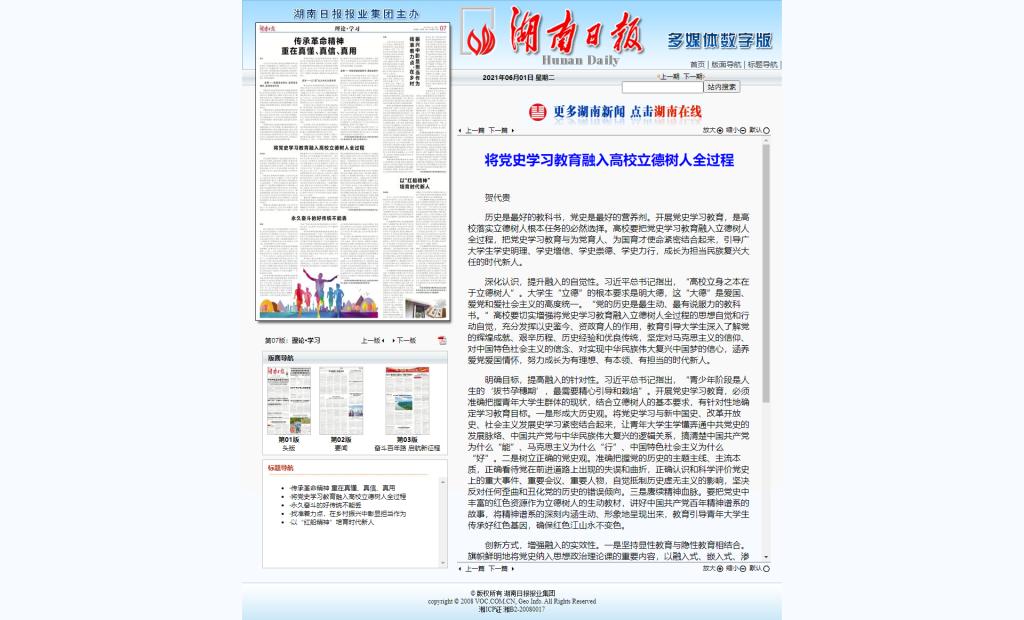 6月1日,湖南日报发布《将党史学习教育融入高校立德树人全过程》。