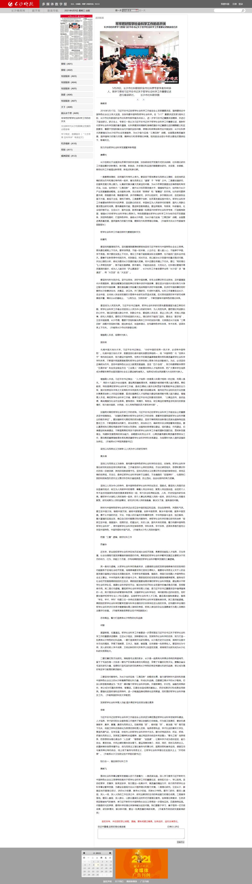 6月9日,长沙晚报发布《牢牢把好哲学社会科学工作的总开关》。