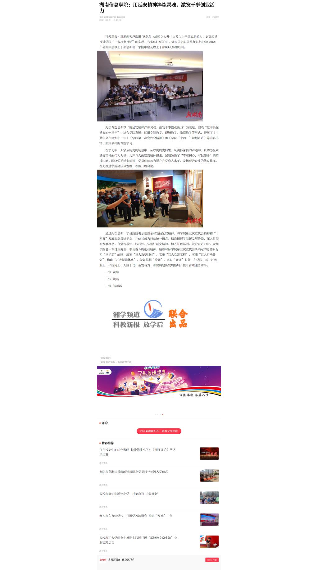 8月1日,新湖南发布《湖南信息职院:用延安精神淬炼灵魂,激发干事创业活力》。