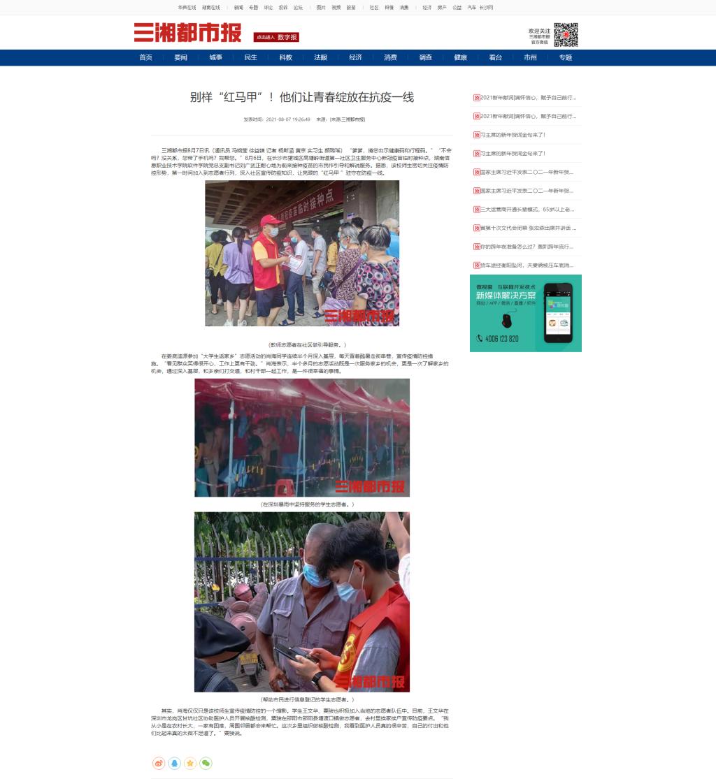 8月7日,三湘都市报发布《别样“红马甲”!他们让青春绽放在抗疫一线》。
