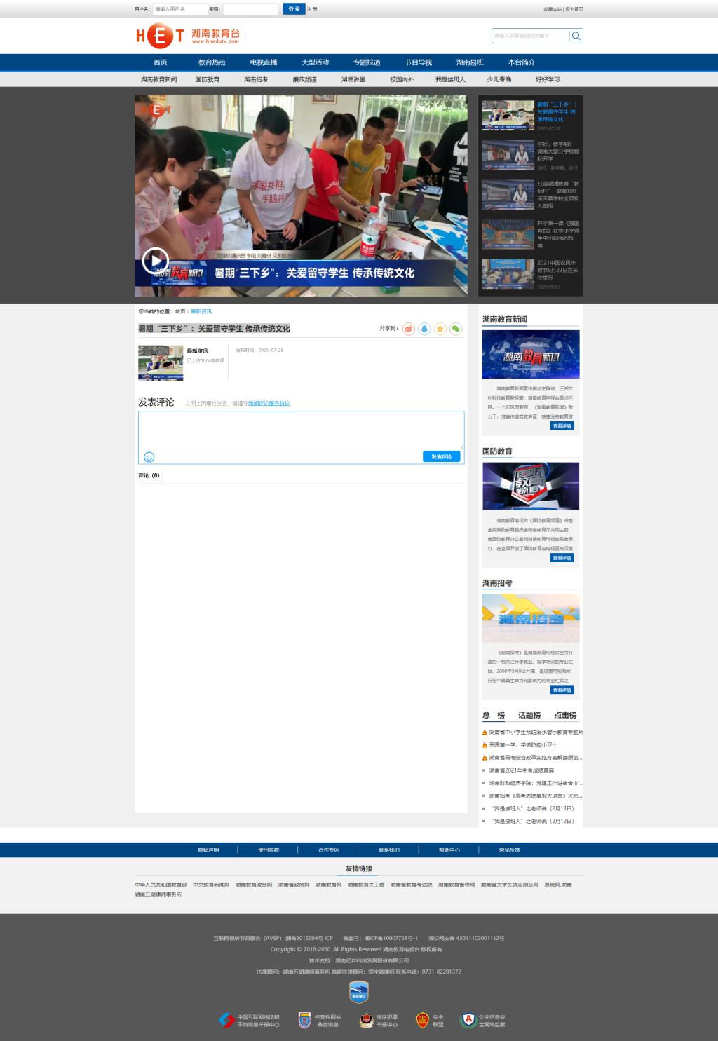 7月28日,湖南教育台发布《暑期“三下乡”:关爱留守学生 传承传统文化》。