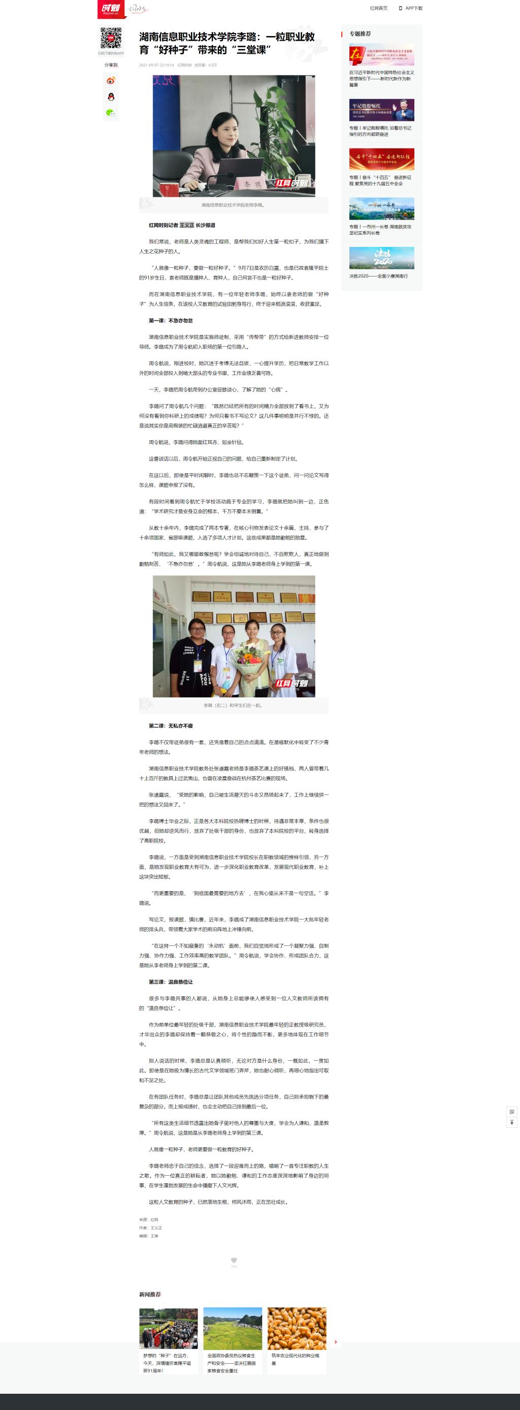 9月7日,红网发布《best365手机版官方网站李璐:一粒职业教育“好种子”带来的“三堂课”》。