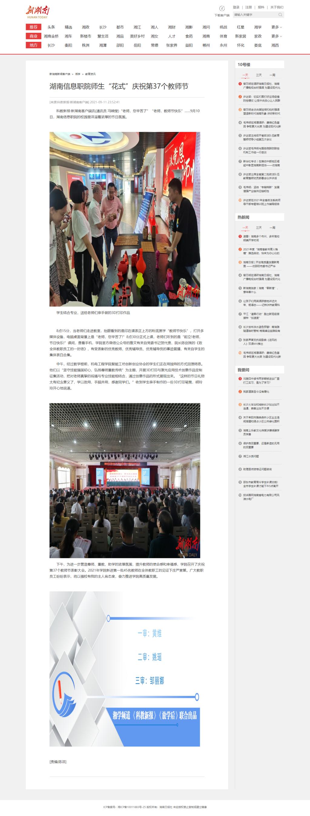 9月11日,新湖南发布《湖南信息职院师生“花式”庆祝第37个教师节》。