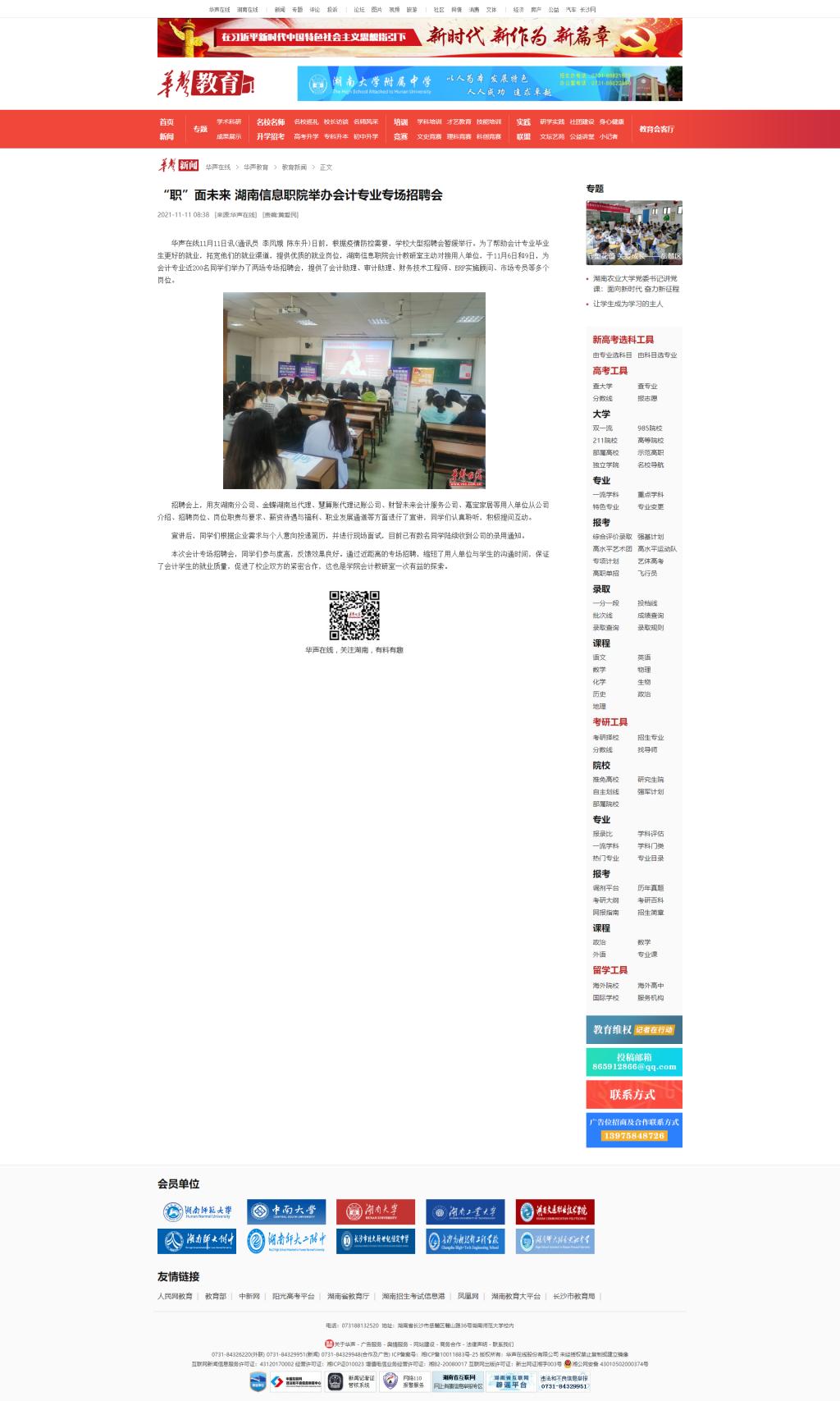 11月11日,华声在线发布《“职”面未来 湖南信息职院举办会计专业专场招聘会》。