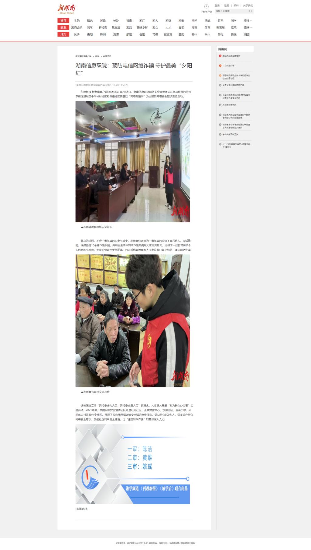 12月20日,新湖南发布《湖南信息职院:预防电信网络诈骗守护最美“夕阳红”》。