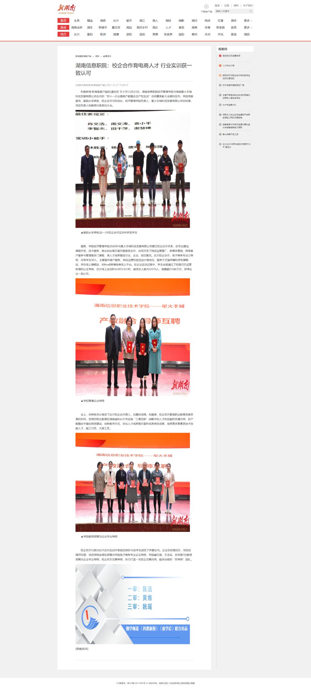 12月27日,新湖南发布《best365手机版官方网站:校企合作育电商人才 行业实训获一致认可》。